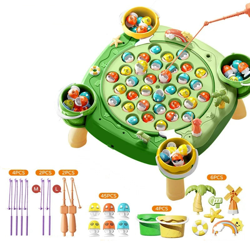 המשחק כולל שולחן דיג קטן עם דגים צבעוניים שנעים על פני המים, כל שחקן צריך להשתמש בחכה שלו ולנסות לדוג את הדג המנצח. עם כל דג שתופסים, המשחק הופך מרתק ומלא במתח – מי יצליח לדוג את הדגים הכי שווים?