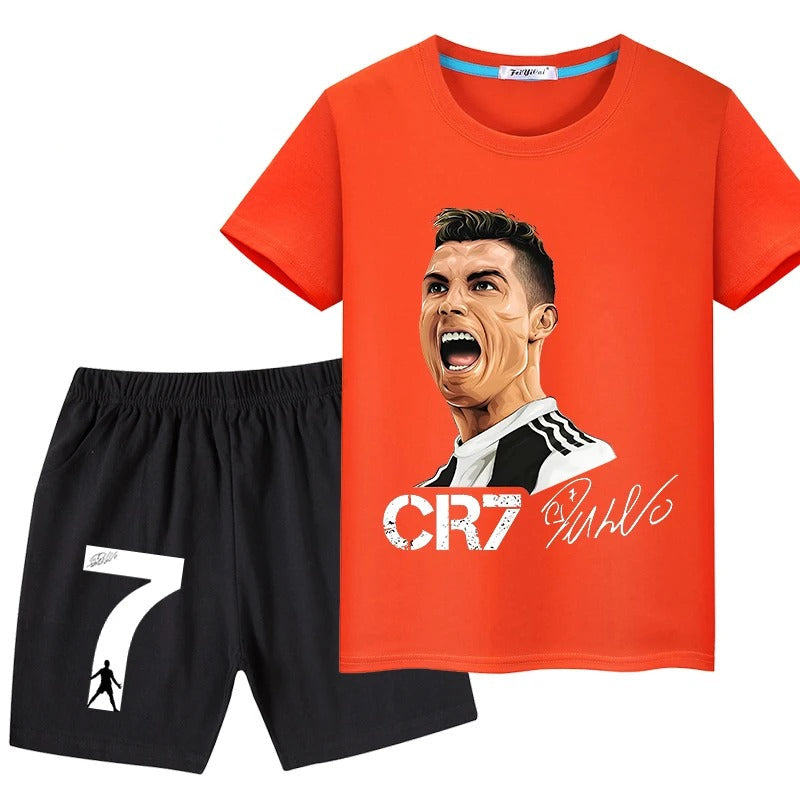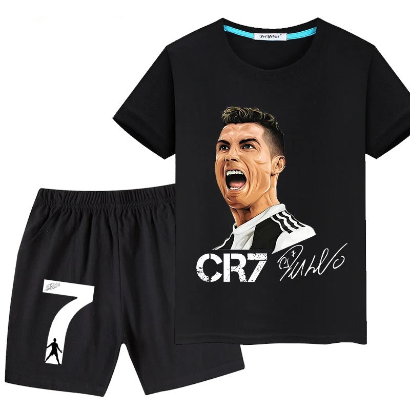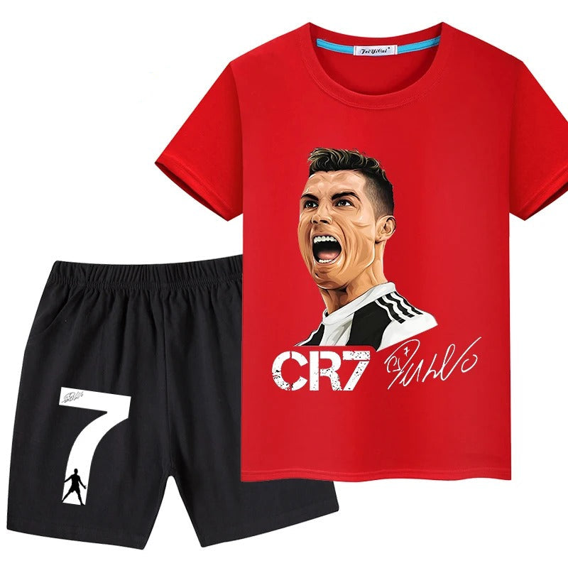 הסט כולל חולצה קיצית עם הדפס של רונאלדו ומכנסיים תואמים, עשוי מבד קליל ונעים שמספק נוחות אולטימטיבית בימים חמים. החליפה אידיאלית למשחקים בחוץ, טיולים או סתם ללבוש יומיומי כשמתחשק לילד להרגיש שחקן מקצועי.