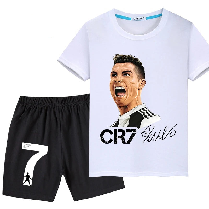 - חולצה עם הדפסים של רונאלדו, מכנסיים תואמים.
